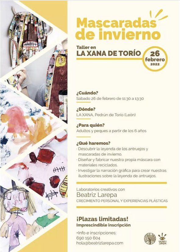 La Xana del Torío en la localidad de Pedrún de Torío organiza un taller conducido por Beatriz Larepa y Laboratorios Creativos para este sábado 26 de febrero entre las once y media y la una y media de la tarde.